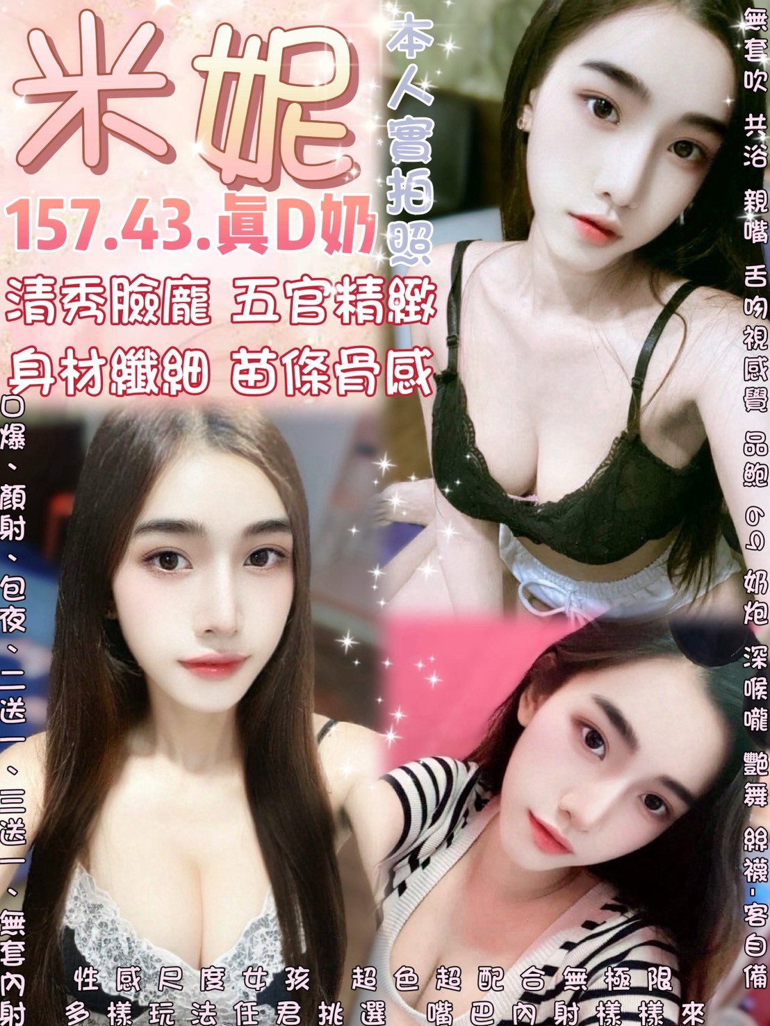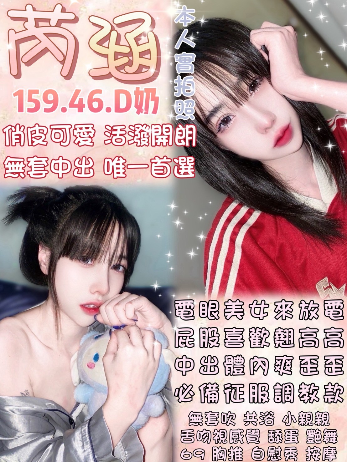 無套吹 共浴 小親親 舌吻視感覺 深喉嚨 舔蛋 胸磨臉 69 品鮑 胸推 屁推 奶炮 按摩 艷舞 毒龍 情趣用品<客自備 絲襪<客自備