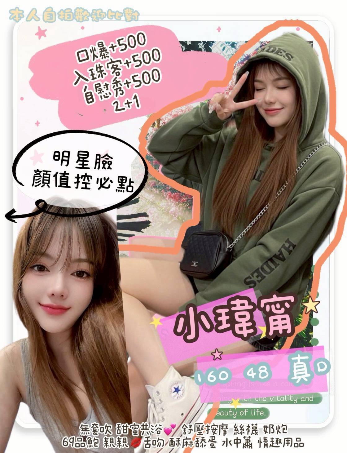 ☑️無套吹 ☑️Kiss☑️舌吻☑️前後澡 ☑️按摩 ☑️胸推 ☑️絲襪 ☑️品鮑☑️舔蛋☑️奶泡☑️69☑️水中蕭