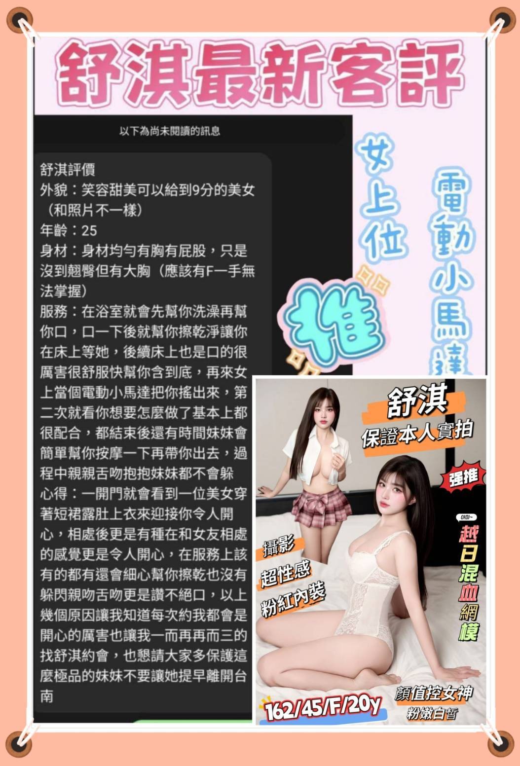 甜蜜共浴/殘廢澡/無套吹/戴套做/舌吻/品鮑/69/按摩/奶炮/乳交/吞蛋舔睪丸/挑逗/調情/舒麻舌功..……