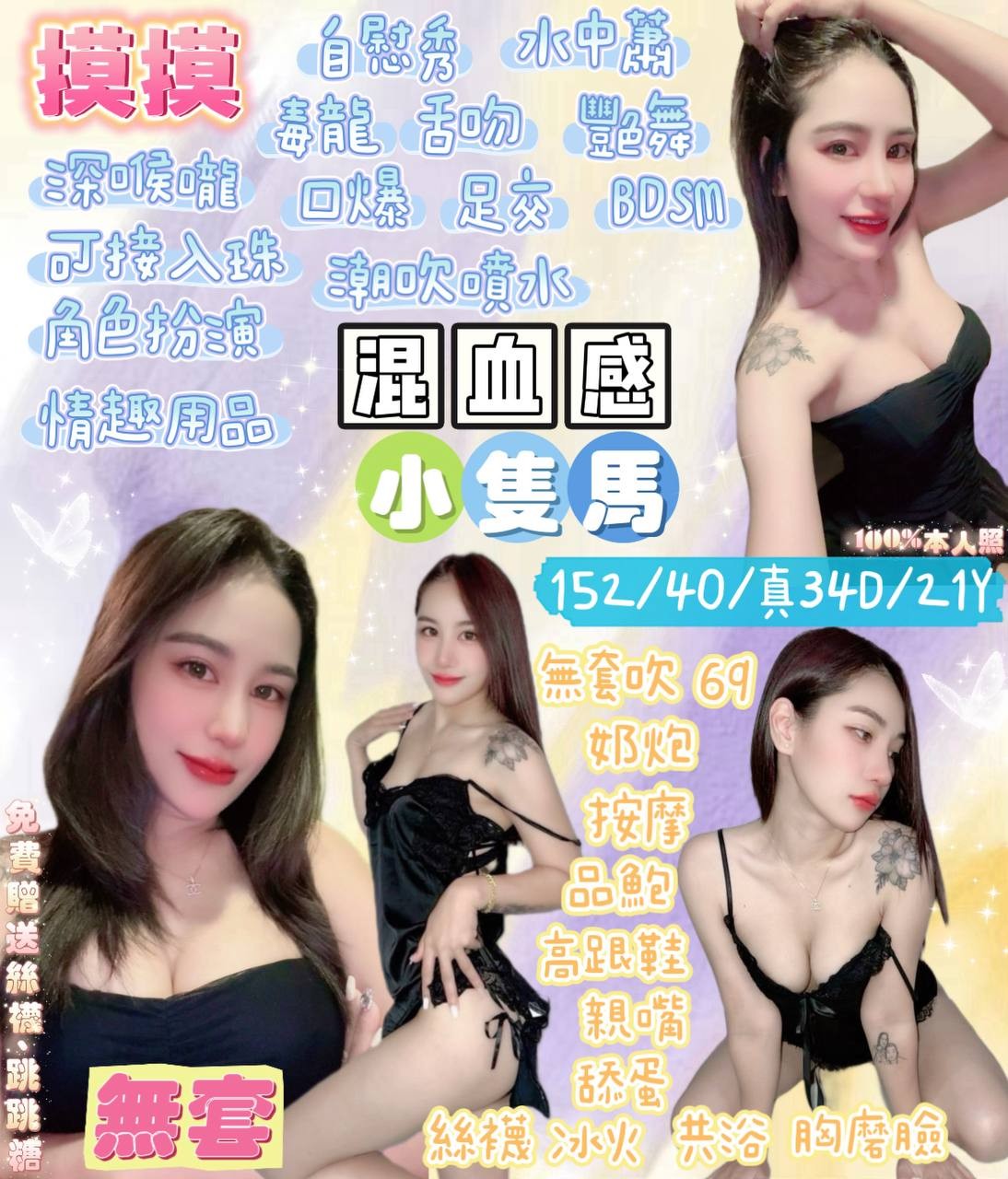 無套吹/奶泡/69/親嘴/按摩/品鮑/共浴/高跟鞋/舔蛋/胸膜臉/絲襪/🉑️深喉嚨/🉑️水中蕭/🉑️自衛秀/🉑️情趣用品/🉑️足交/🉑️舌吻/🉑️入珠/🉑️bdsm/🉑️雙龍