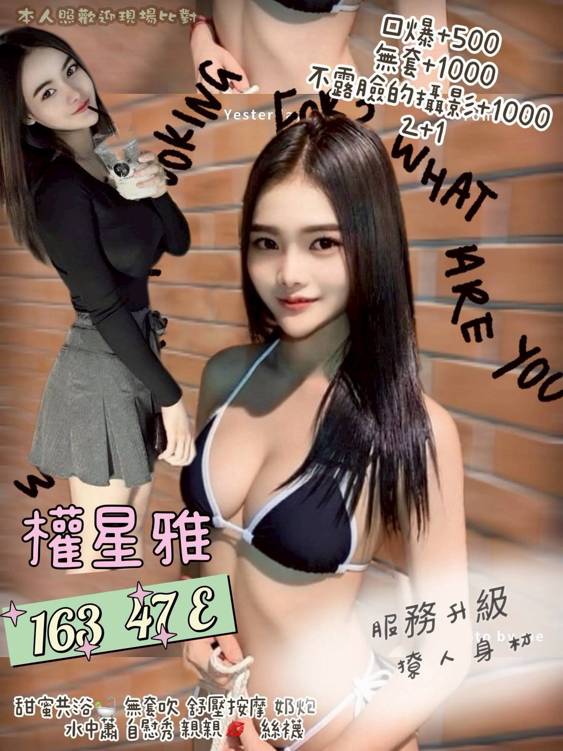 ☑️無套吹 ☑️Kiss☑️舌吻☑️前後澡 ☑️按摩 ☑️胸推 ☑️絲襪 ☑️品鮑☑️舔蛋☑️奶泡☑️69☑️深喉嚨